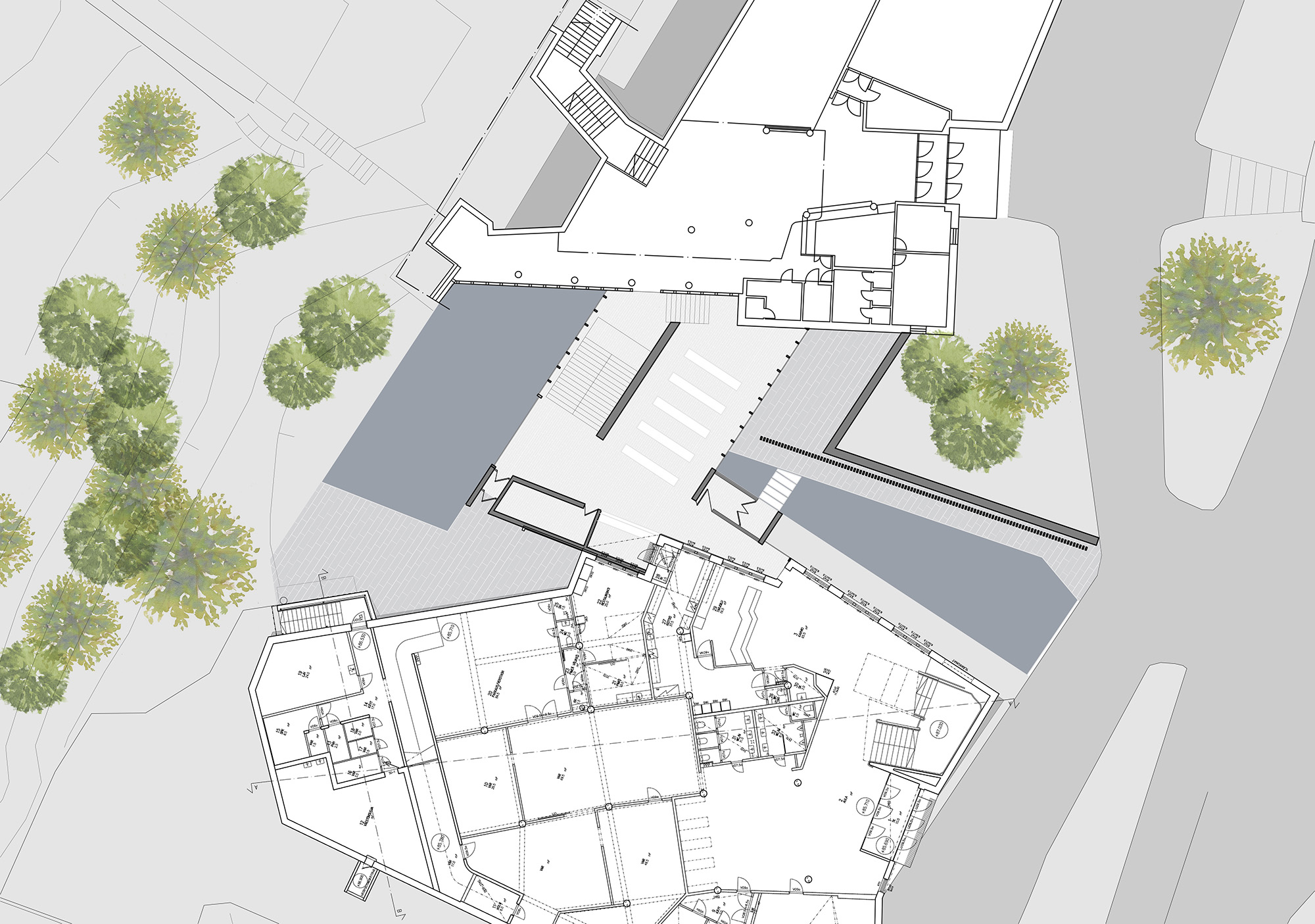 The extension to the Museum of Central Finland and the Alvar Aalto Museum serves as a unifying element for the complex, creating a harmonious integration of the existing buildings with the surrounding landscape and city. By introducing a new way of entering the two existing buildings through its landscaped approach, the new extension places the existing buildings and landscape into perspective.