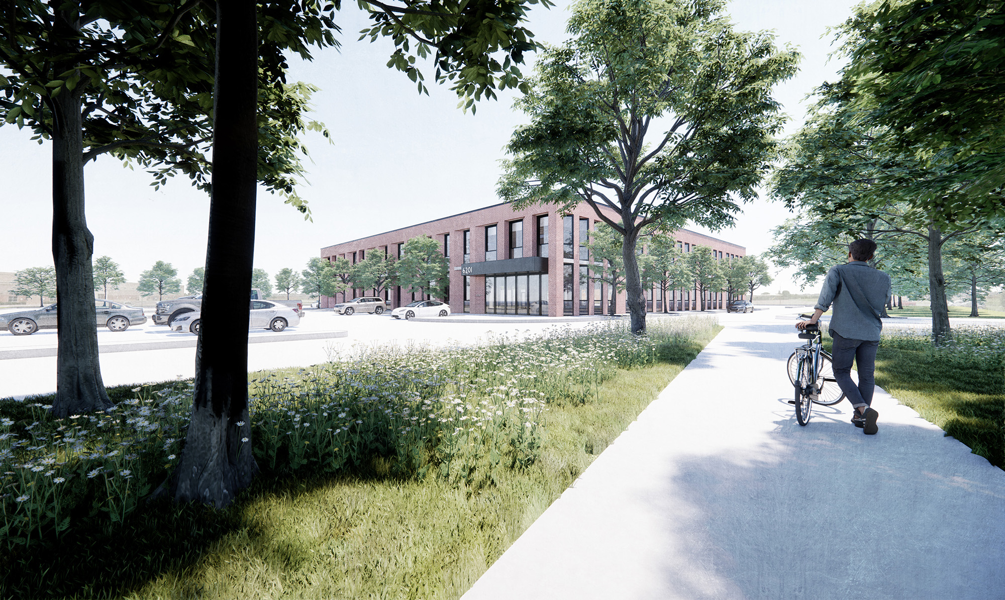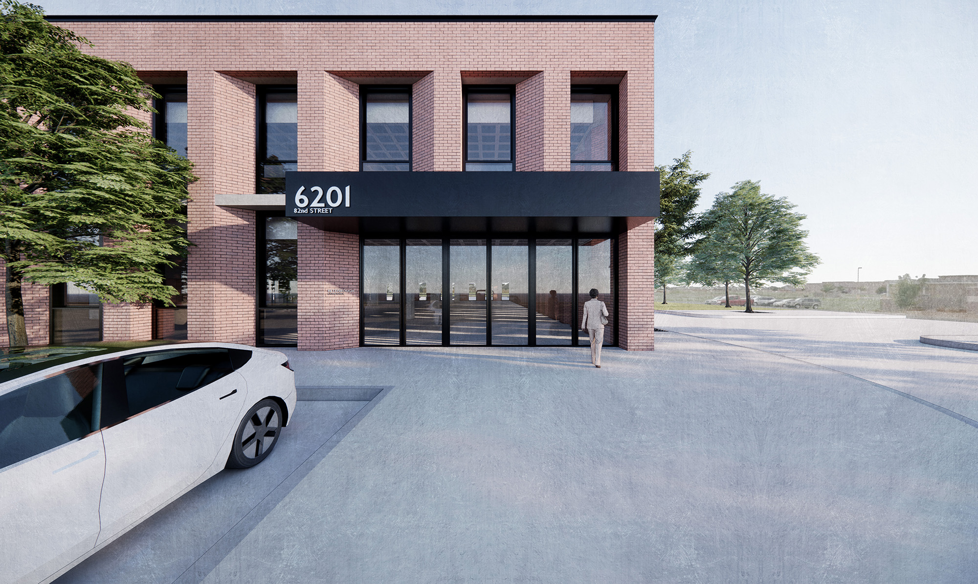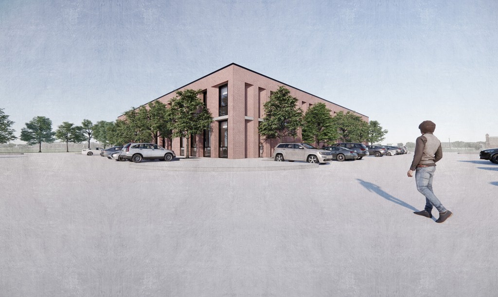 Betenbough Homes, the owner of the development, already had two red brick buildings erected on an adjacent lot and wanted the third one to have the same design language.