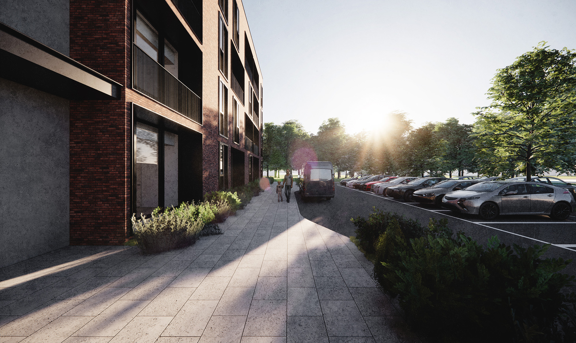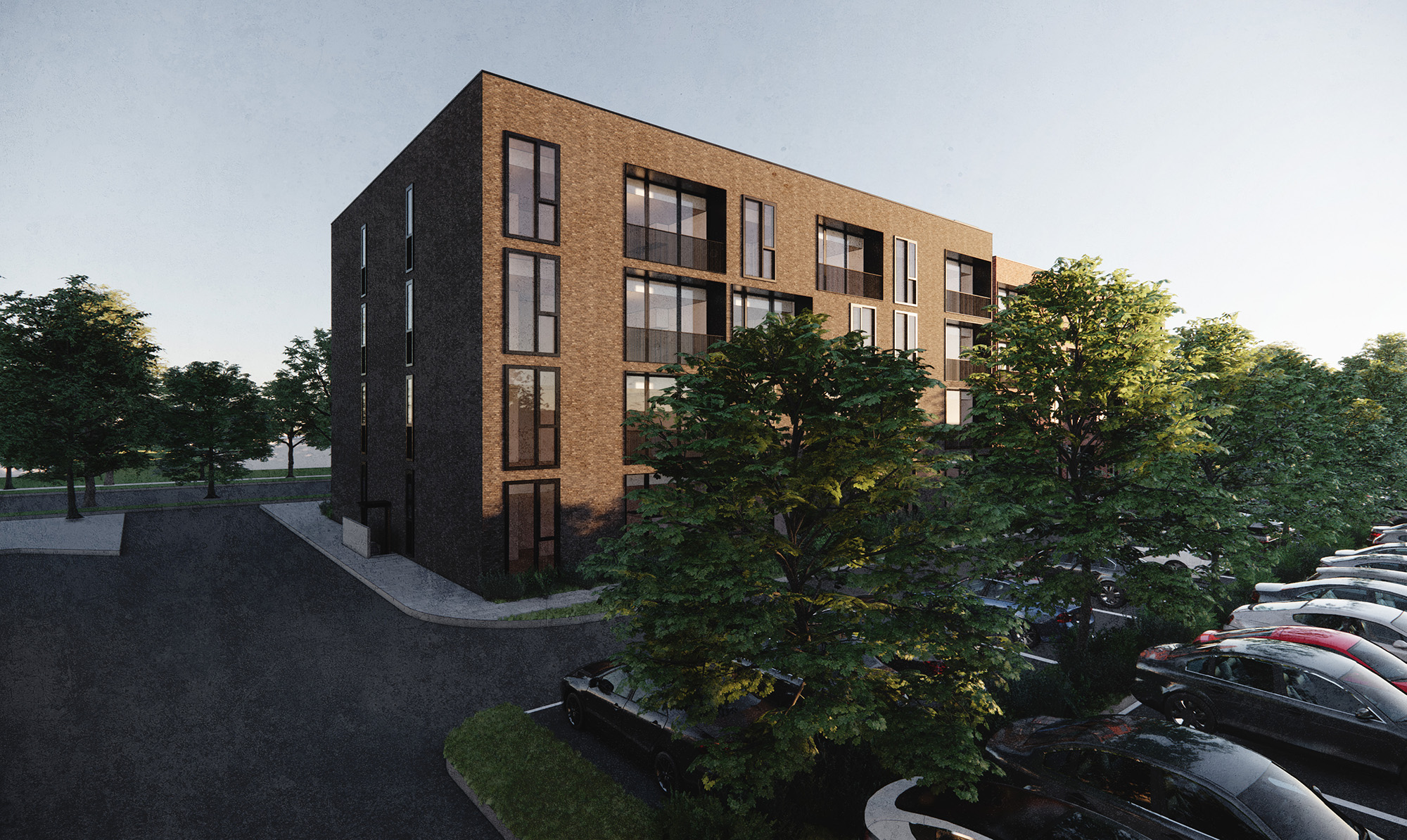 The carpark for the apartments are located to the rear of the site in order to place the building closer to the street so as to prevent the building from being isolated from the surrounding.