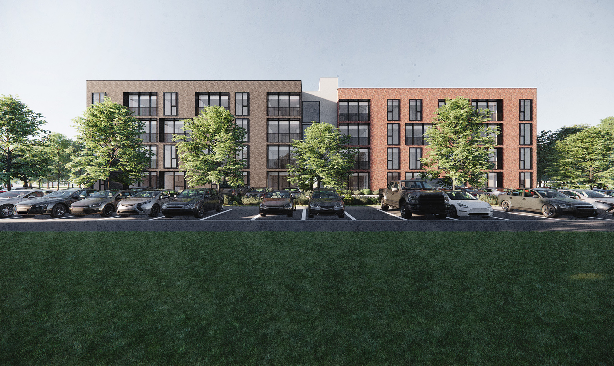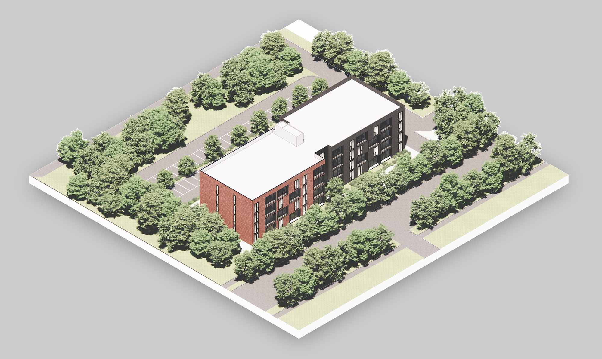 On a tree-lined in a small US city, we designed a building that would fit harmoniously into its local context. Using modular construction, we proposed a design that would fit into this setting without overwhelming its neighbours, creating a building that belongs.