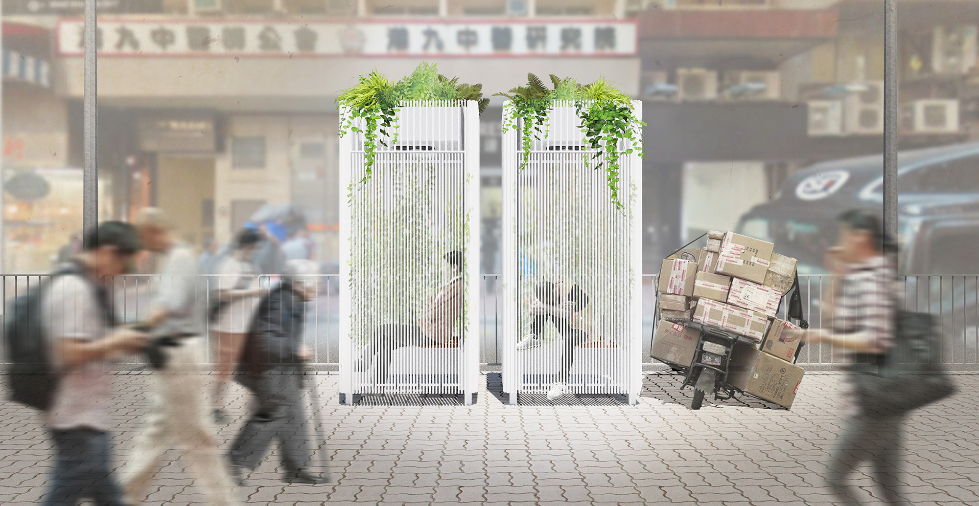In contemporary society, telephone booths have become pockets of unused space. They are relics from a bygone era, representing one of the last refuge of public space in a city all too focused on development.