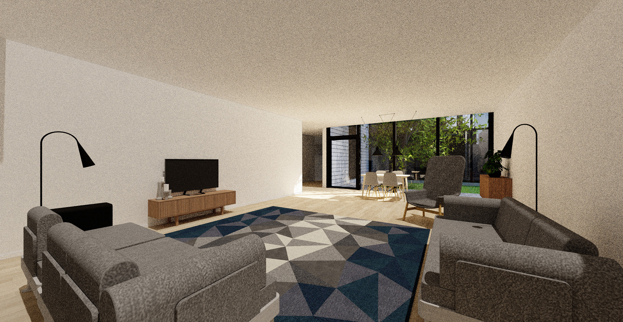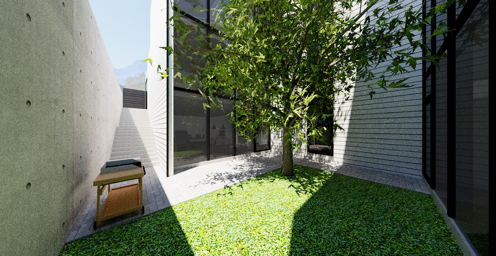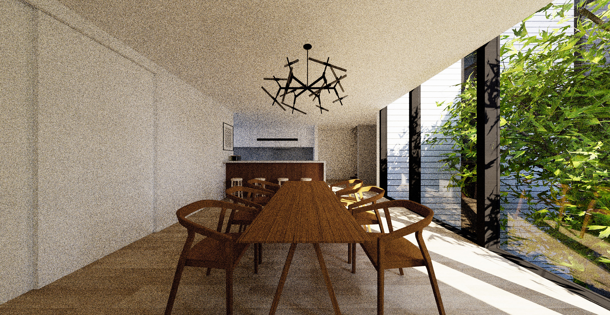 Instead of the typical programmatic arrangement of functions oriented towards the front and back of the house, we proposed a courtyard in the centre, allowing every room in the house access to natural lighting throughout the day. The result is a light and airy design that connects each room to the outdoors directly.