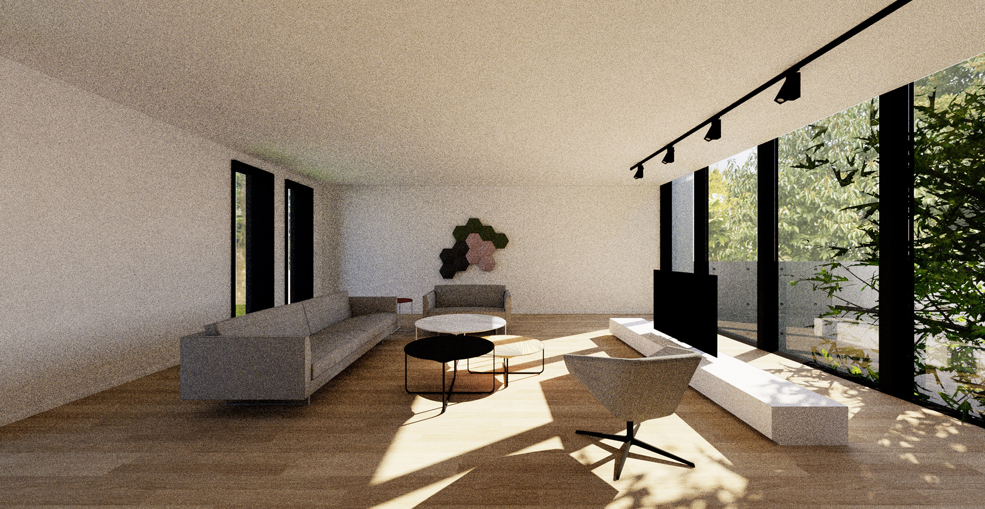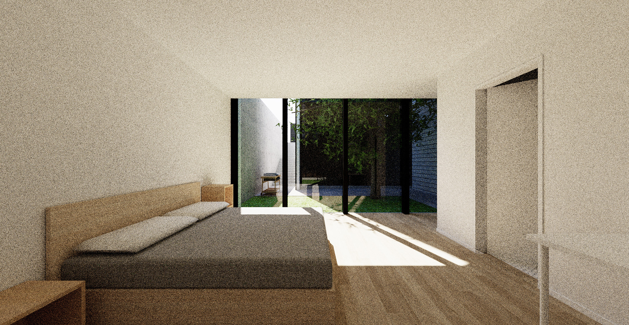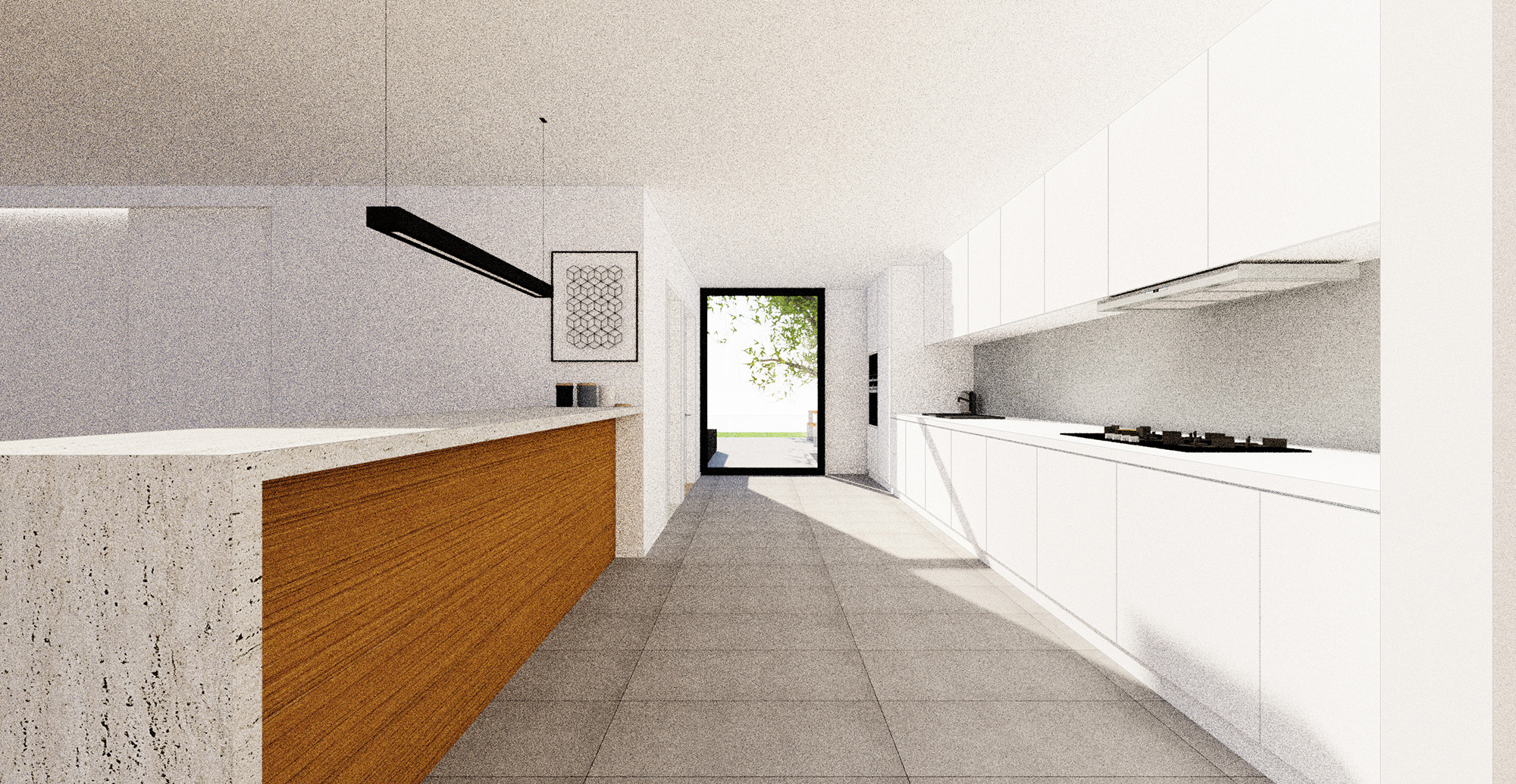 Instead of the typical programmatic arrangement of functions oriented towards the front and back of the house, we proposed a courtyard in the centre, allowing every room in the house access to natural lighting throughout the day. The result is a light and airy design that connects each room to the outdoors directly.
