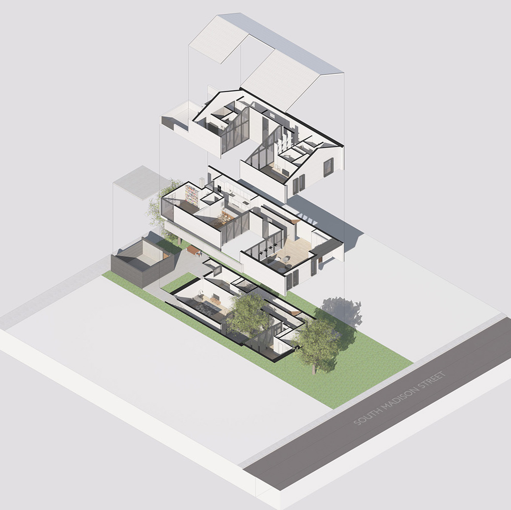 On a suburban lot in Denver, we proposed a house with a unique sunken courtyard which would open up the house to natural lighting and ventilation, creating a house suited for contemporary living but within the context of the surrounding neighbourhood.