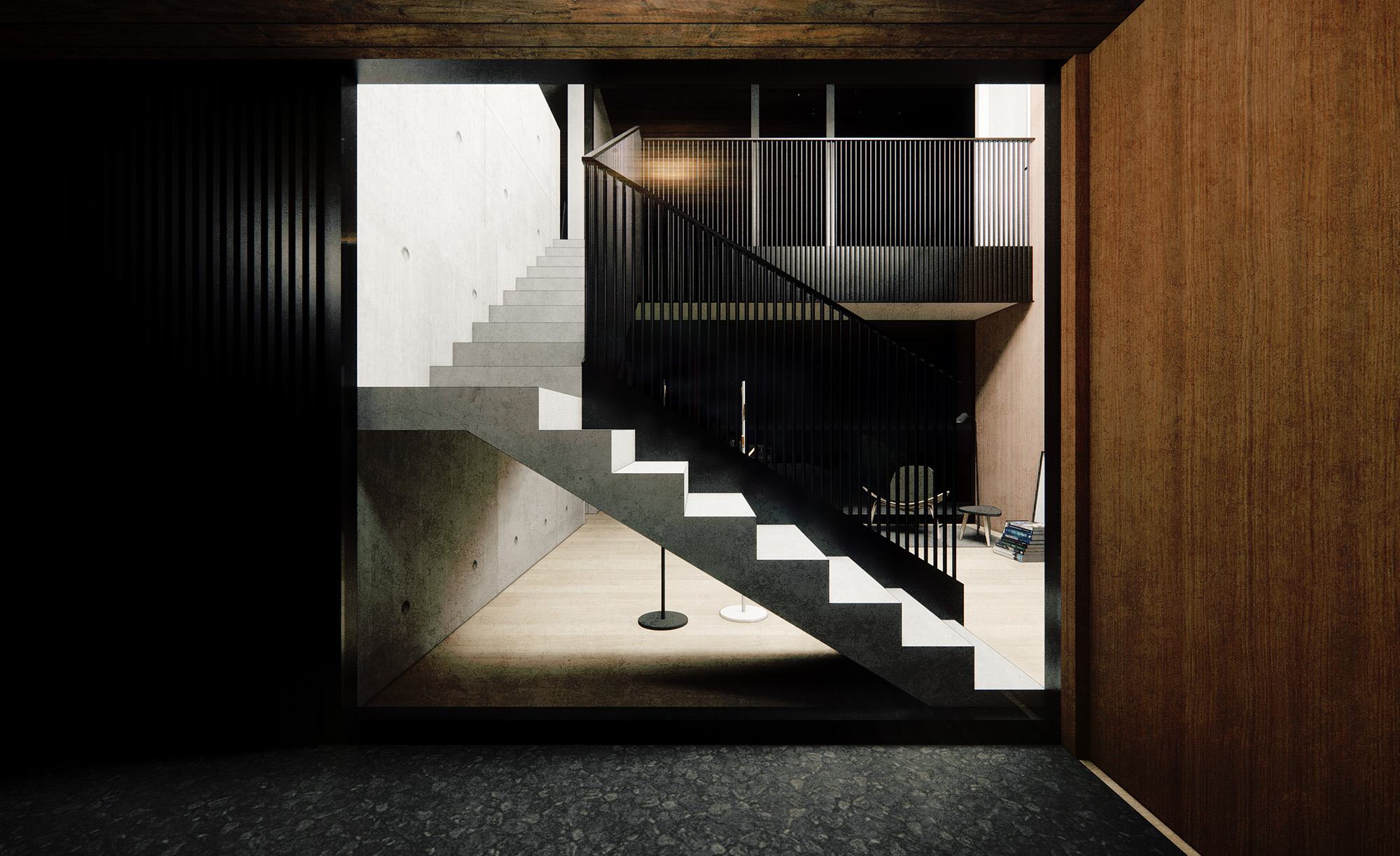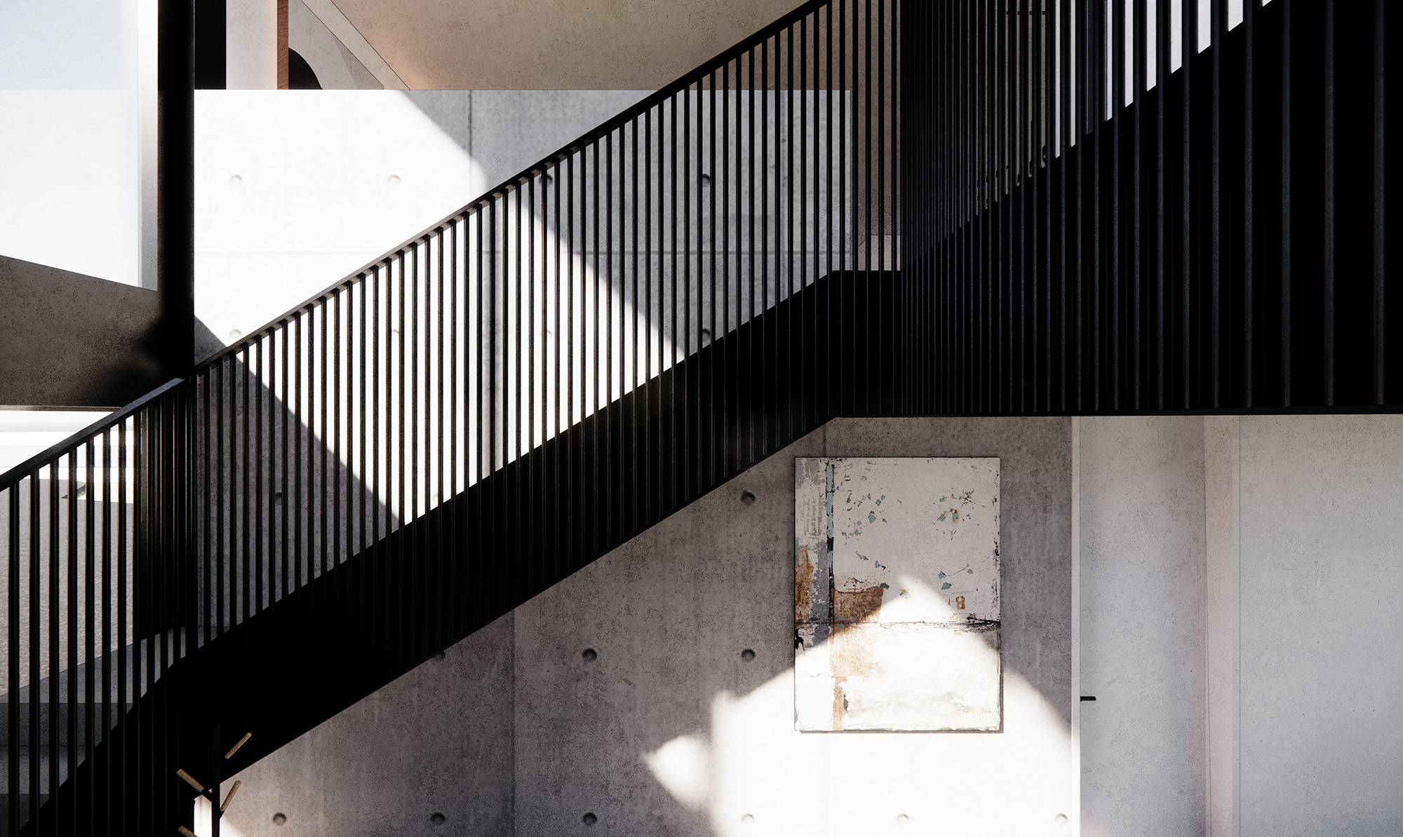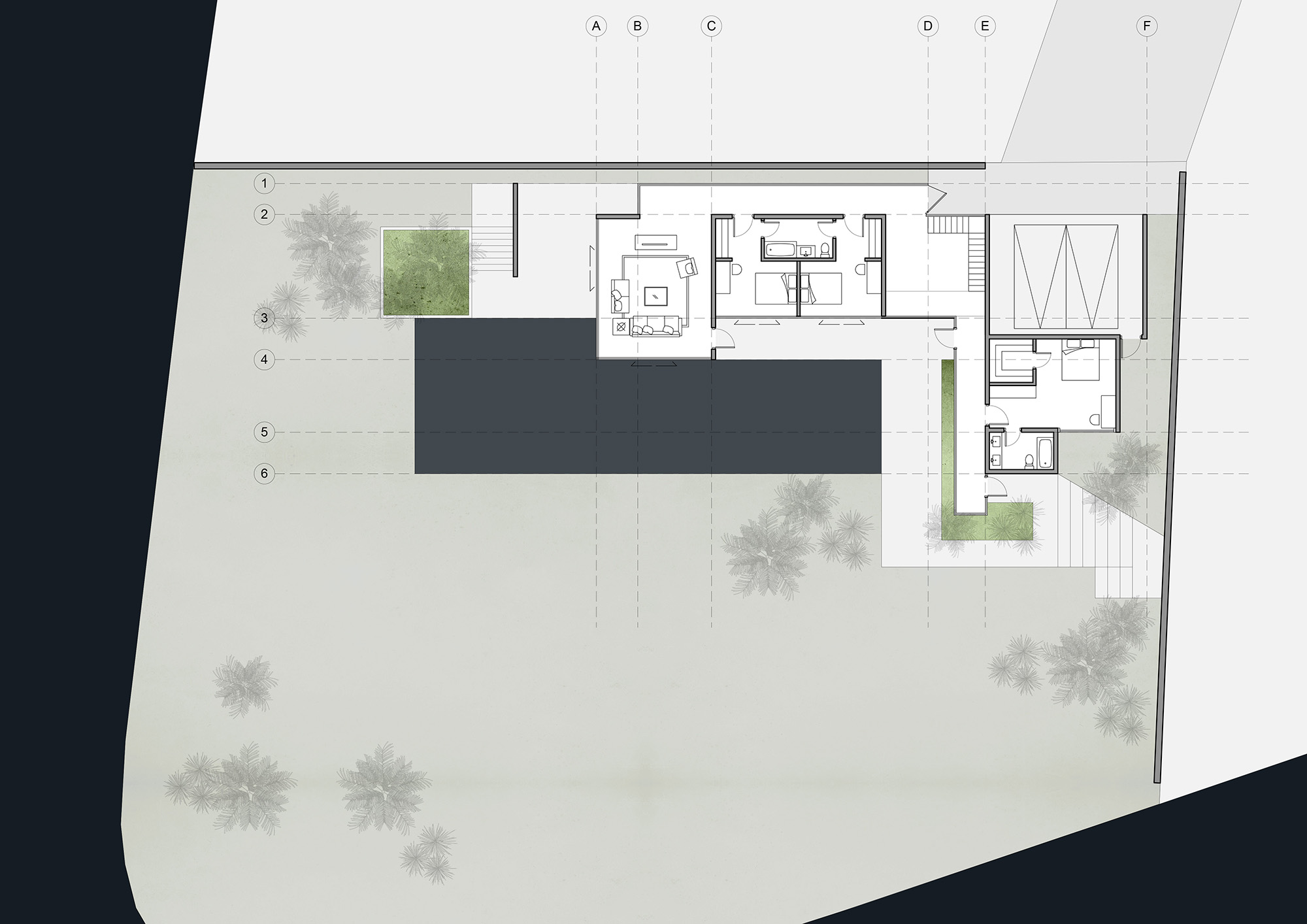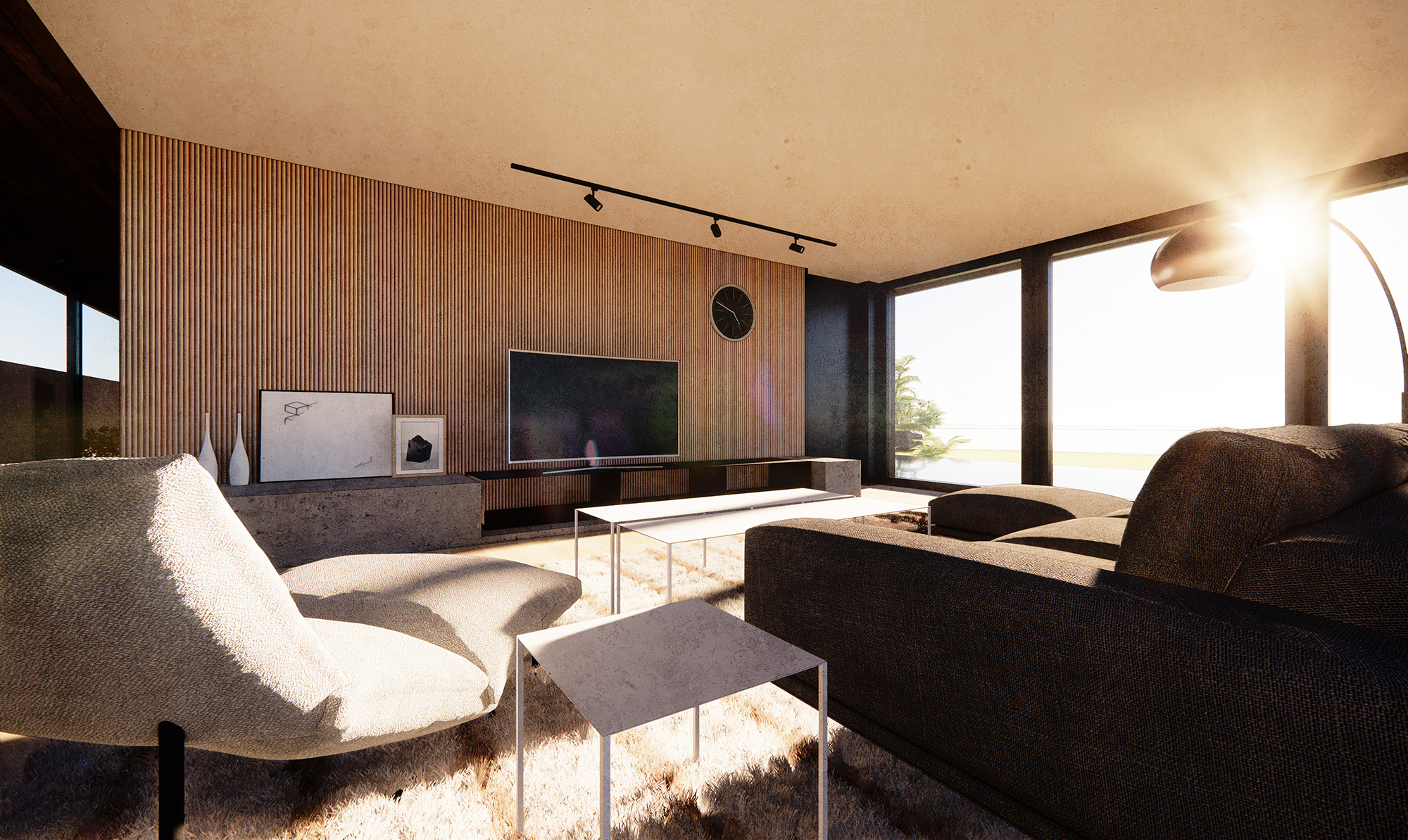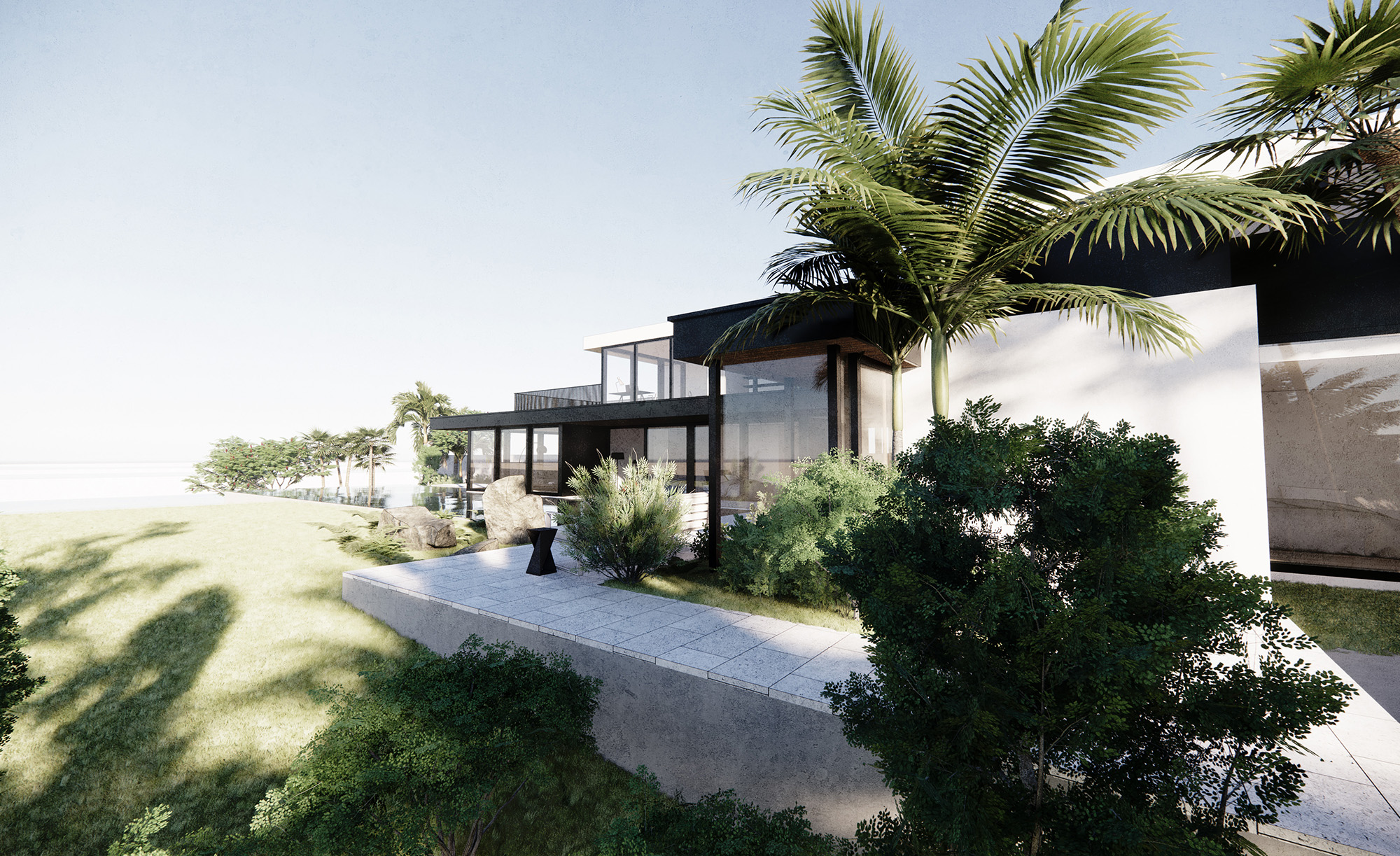 The house is designed around a double storey foyer which acts as the central element of the design. Greeting the inhabitants with a picture window which faces towards the ocean, the foyer pivots around the swimming pool to tie the two elements together.