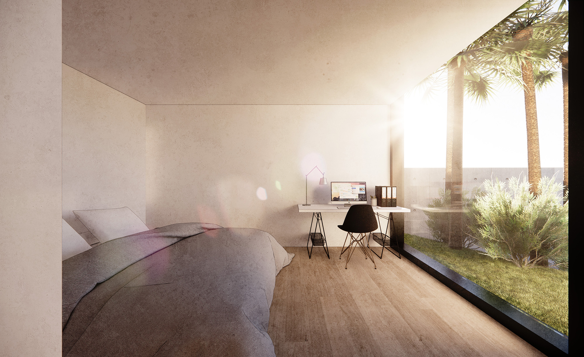 Bedrooms are located on the ground floor and allow direct access to the swimming pool and outdoor garden.