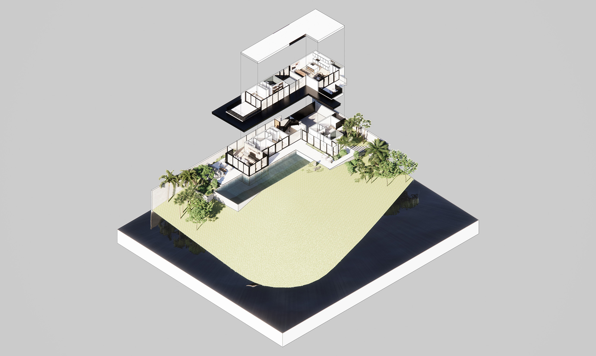 For a site in Western Australia, we were tasked with designing a family house for a young family which embraces the canals and ocean. Wrapping the house around an infinity pool, the design visually and physically connects with the outdoors, taking advantage of the excellent Australian weather.