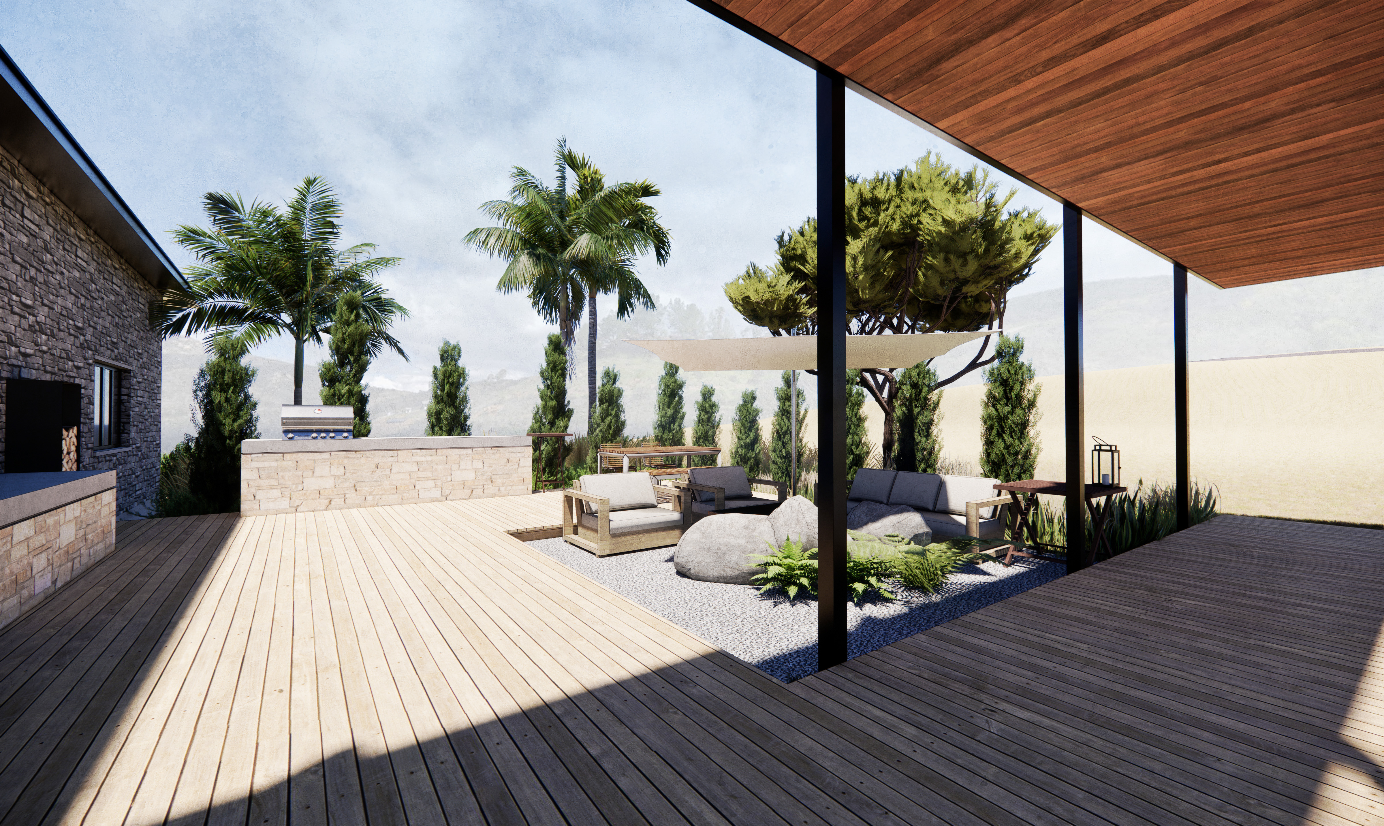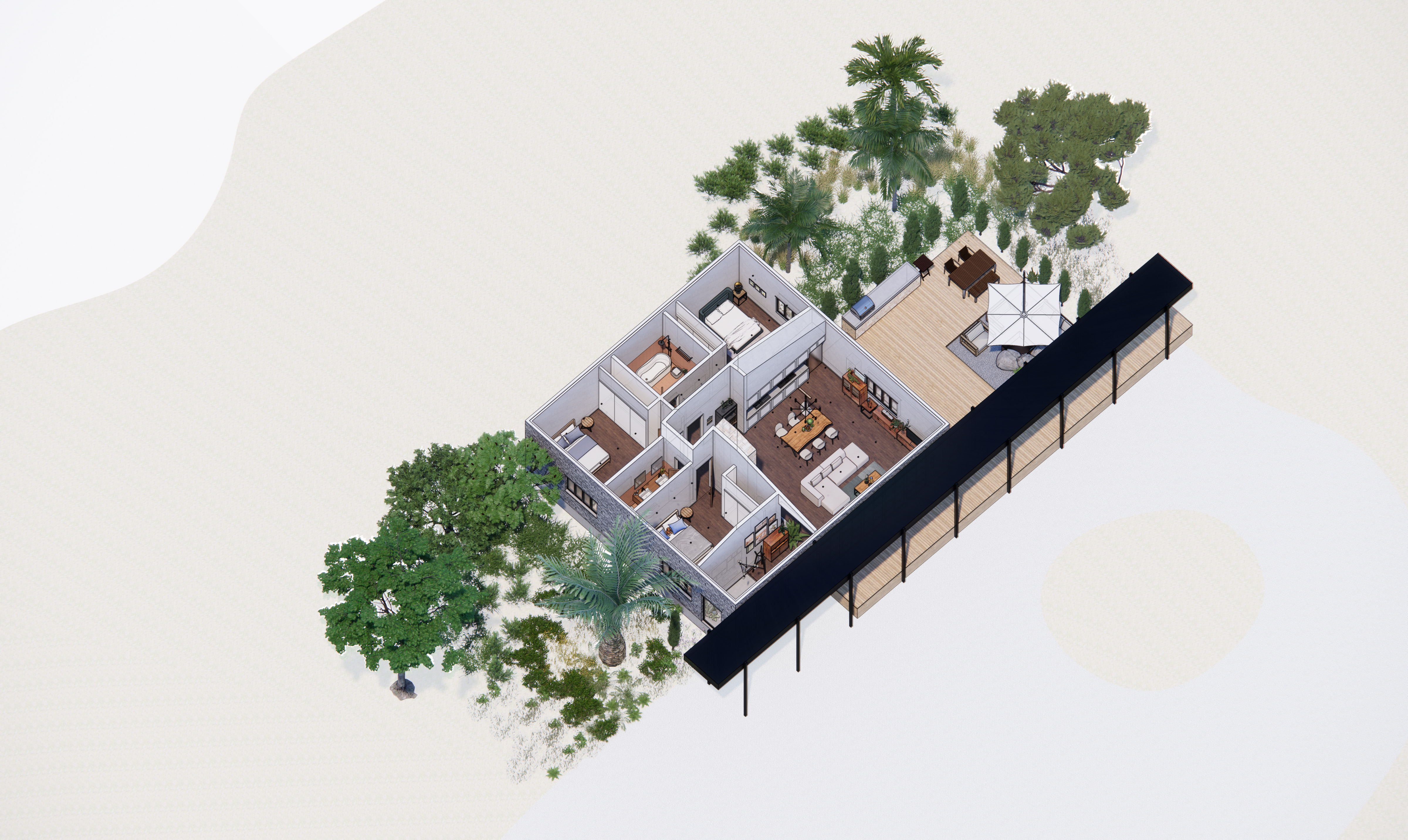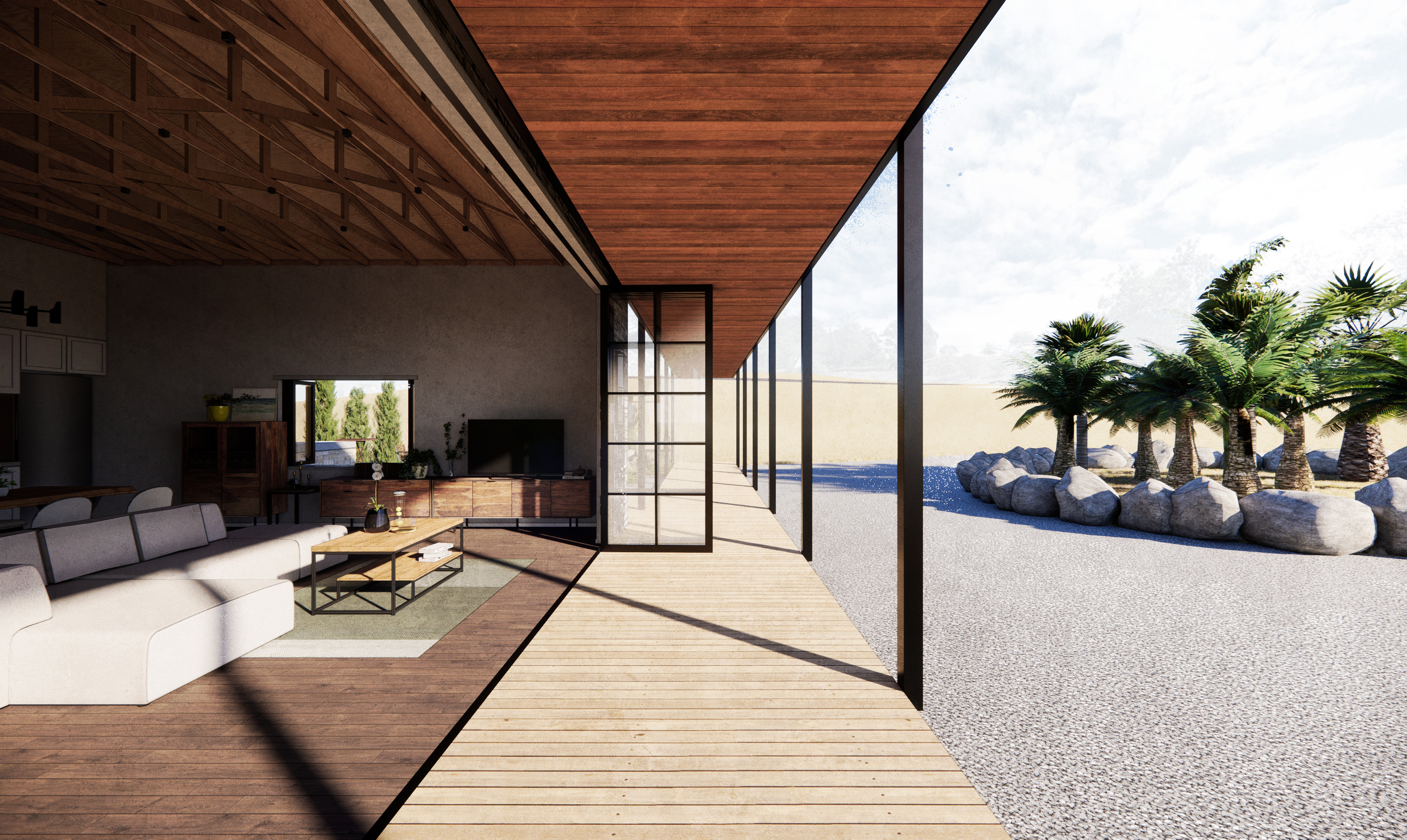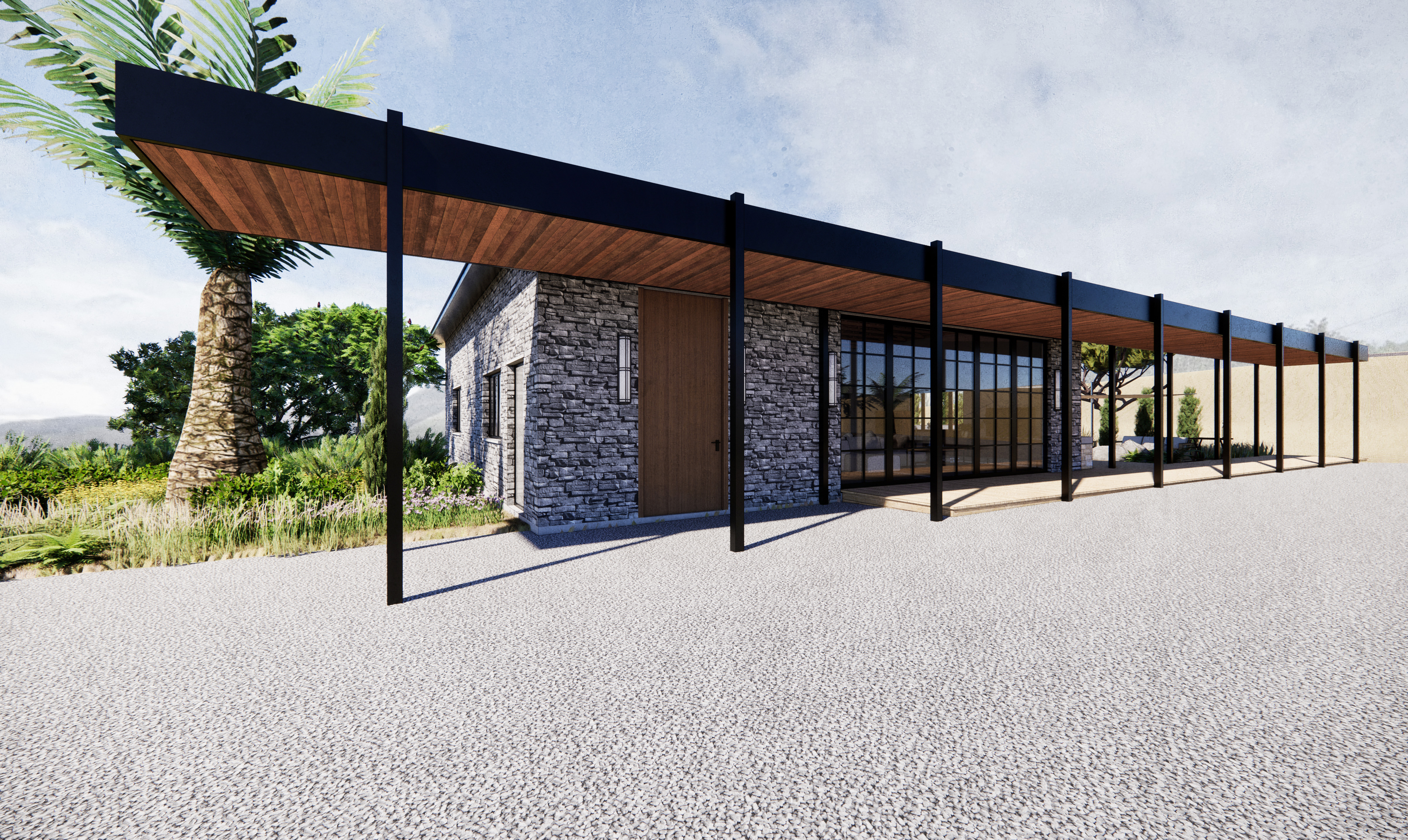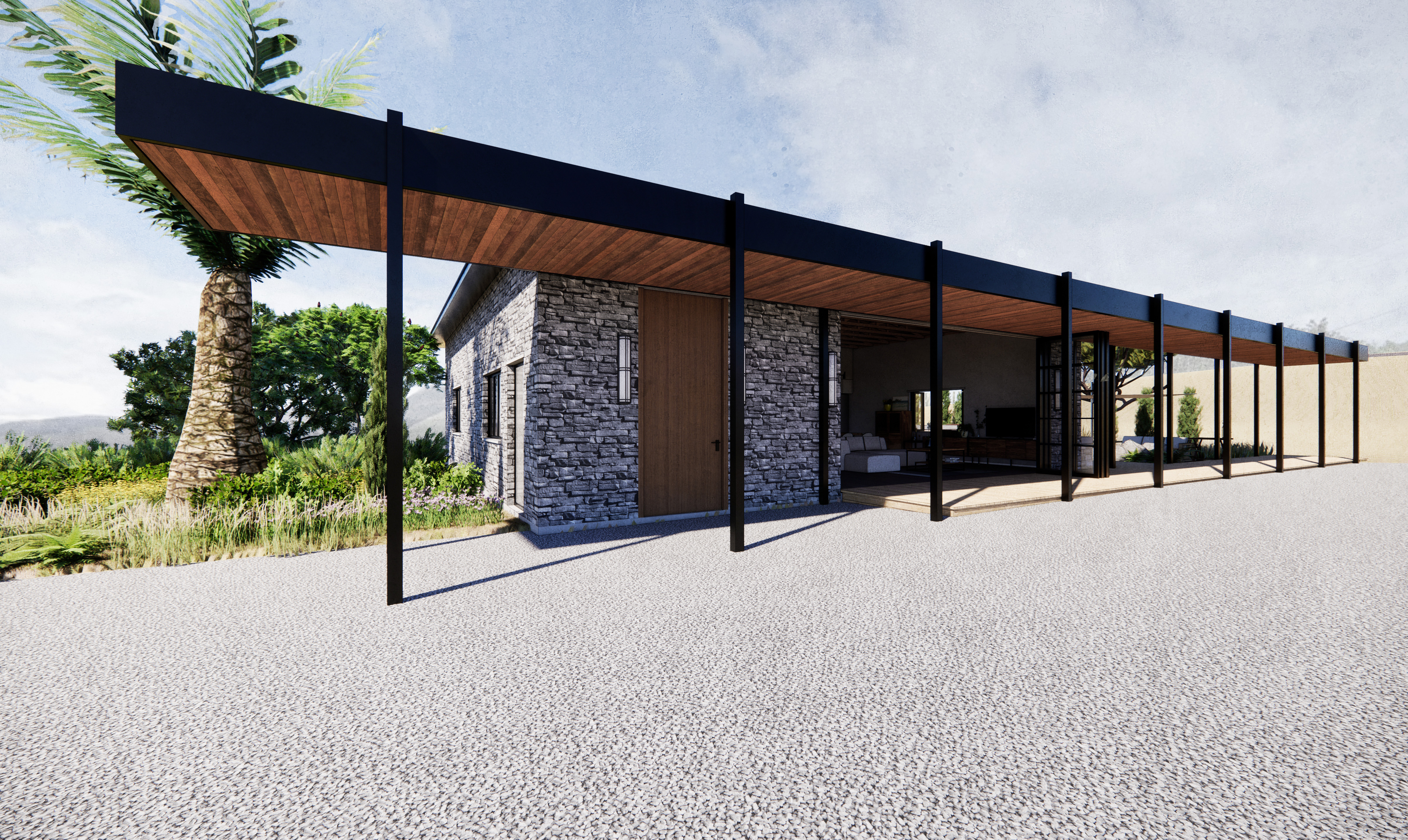 For a site in suburban San Diego, we were tasked with designing a dwelling based around an existing garage structure. The design takes inspiration from climatical conditions of Southern California to connect the indoor and outdoor spaces, creating a living space that flows seamlessly between the two.