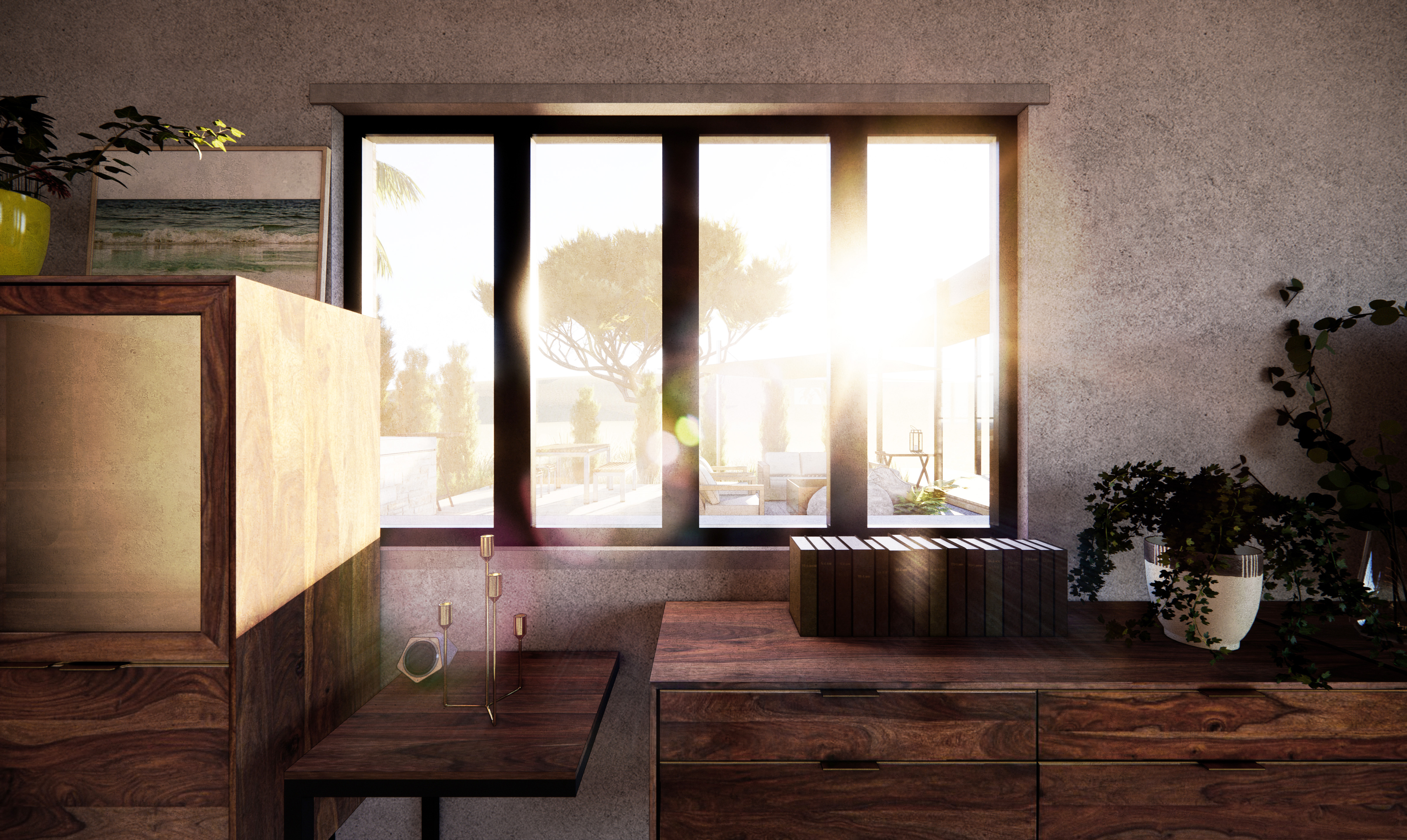 Interior furnishes are designed to complement the Southern charms of the property, with a heavy emphasis on exposed wood and dark metal trims. Terracotta also plays a prominent role in bringing warmth and intimacy to the design.