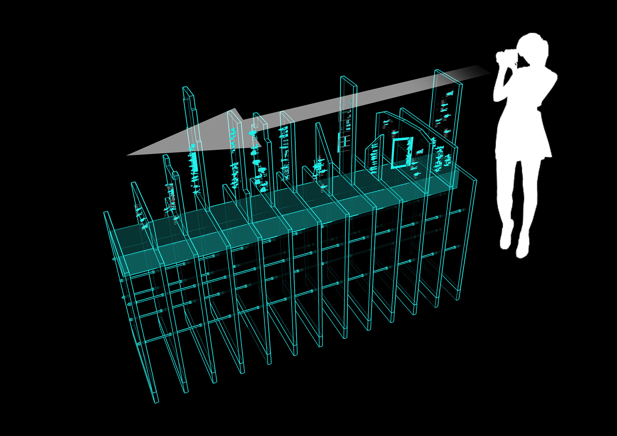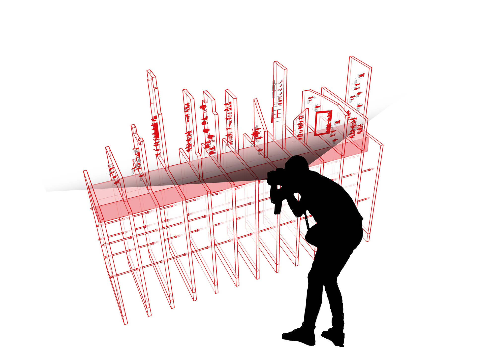 From the other perspective, the different programmes, previously viewed as separated from each other, become the floor plates of the same building. The programmes become stacked atop each other, becoming a sectional model of a typical mixed-use building in Hong Kong.