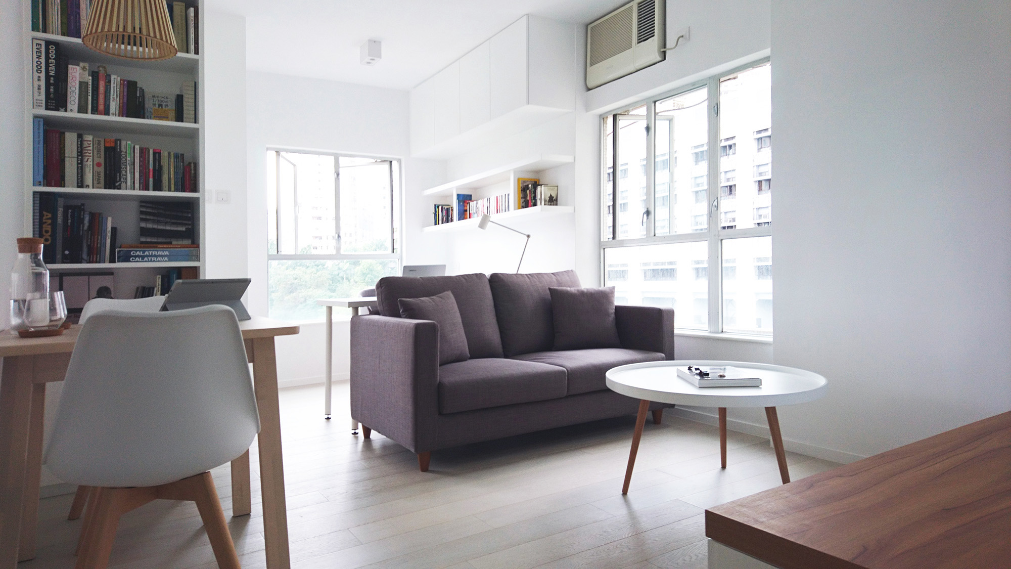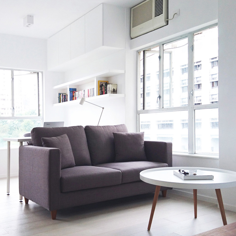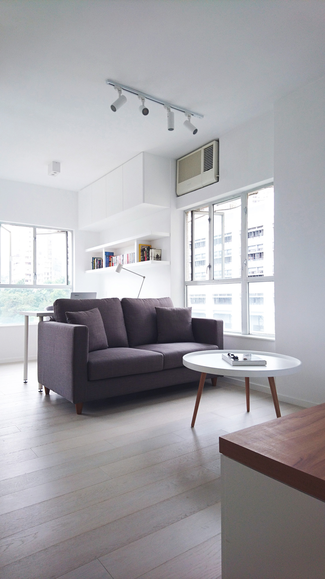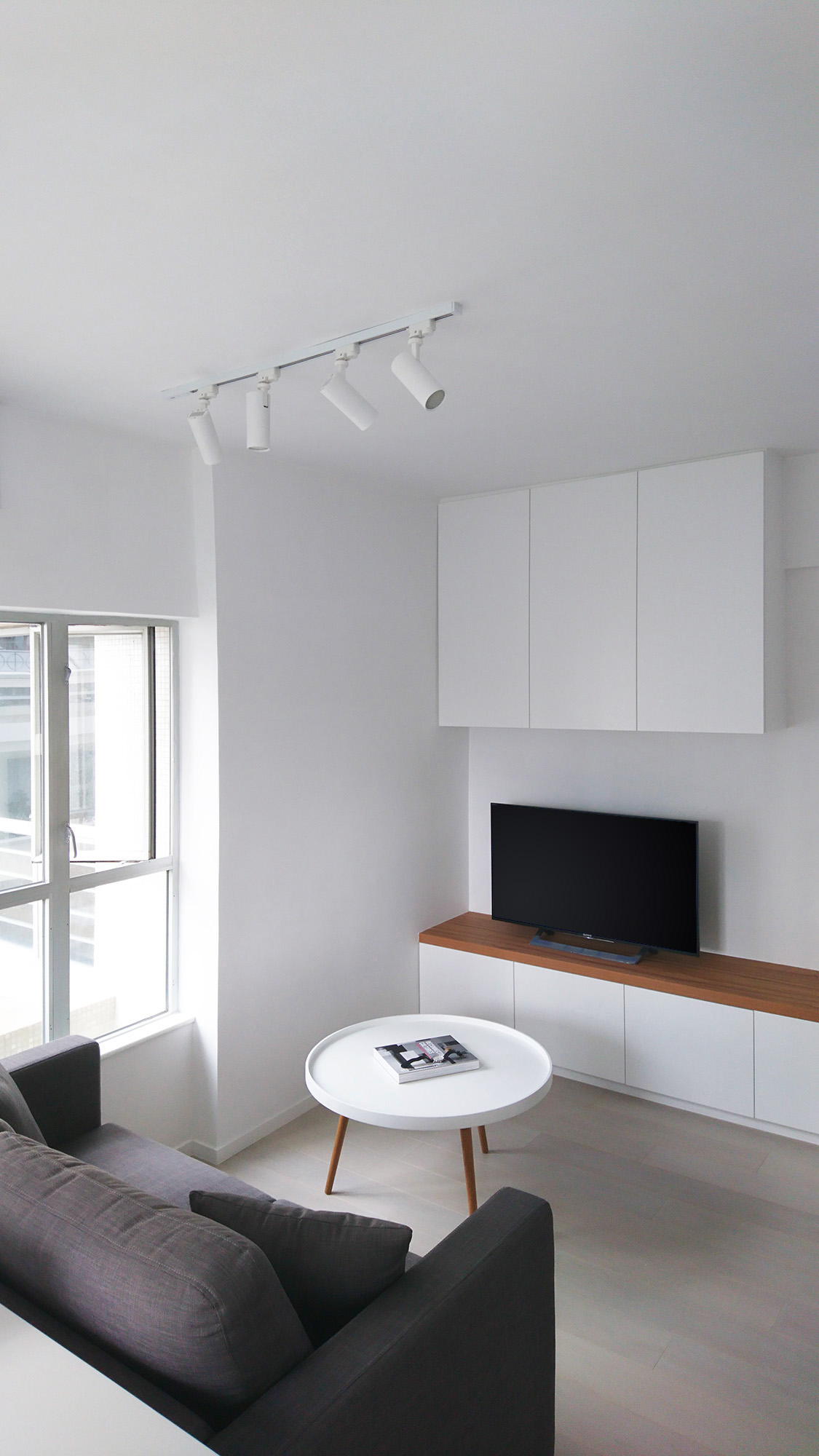 For a small apartment in Hong Kong, JOKE designed a space that flows seamlessly between the various functions of living, working, cooking, cleaning and sleep. The introduction of natural lighting into the main living spaces create a brightly lit interior, allowing sunlight to penetrate into all areas of the apartment.